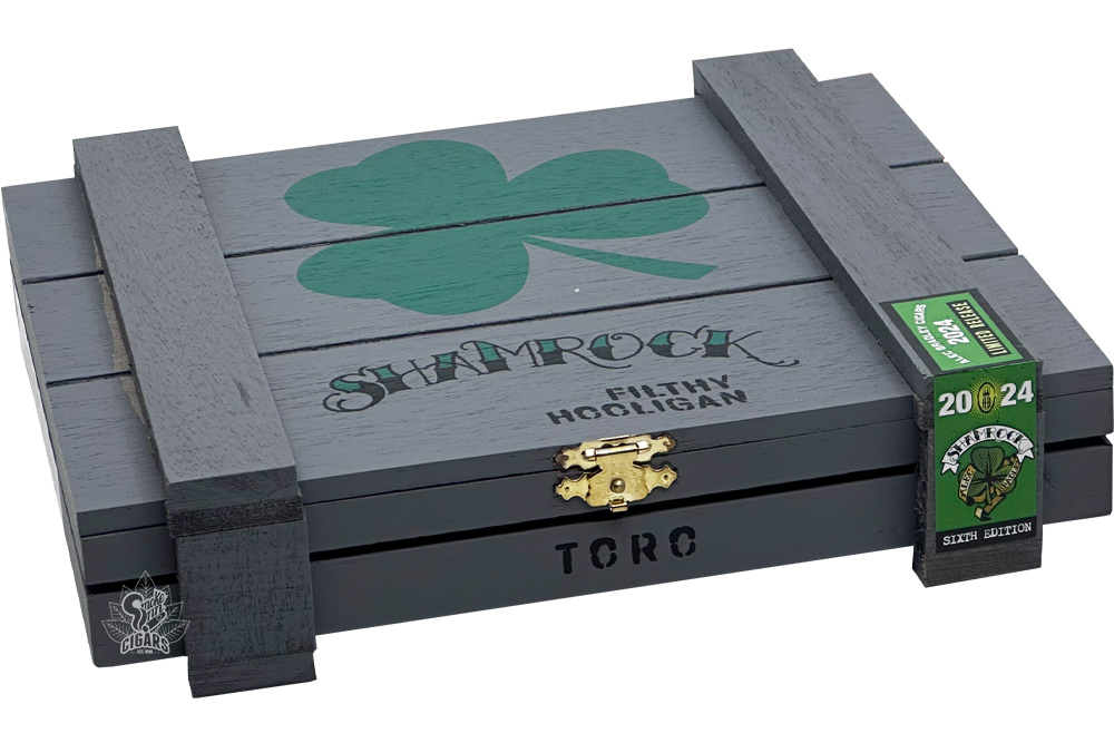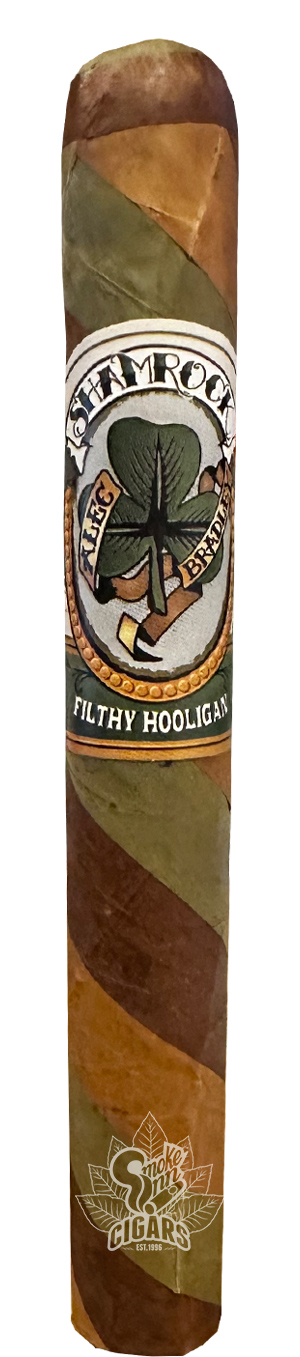 If you like Filthy Hooligan, you'll love the Shamrock! Alec Bradley Black Market Filthy Hooligan Shamrock is much more limited than the standard Filthy Hooligan, typically limited to 500–1,500 boxes each year. But it's the unusual wrapper that truly makes the difference, as the Shamrock boasts a head-turning three-part barber pole wrapper, offering smokers a twist of Honduran candela, Habano, and Habano maduro leaves. These three tobaccos are secured over an undisclosed binder/filler and hand-rolled in a singular toro format at the renowned Tabacos de Oriente factory in Honduras. The Alec Bradley Black Market Filthy Hooligan Shamrock is a limited smoking experience, meant to be paired with Irish stouts, green beer, and anything else you're likely to consume on Saint Patrick's Day! The experience is truly one of a kind, offering a medium body and atypical flavor characteristics of lemon grass, sourdough, cedar, ginger snap, and an enjoyably savory core.
