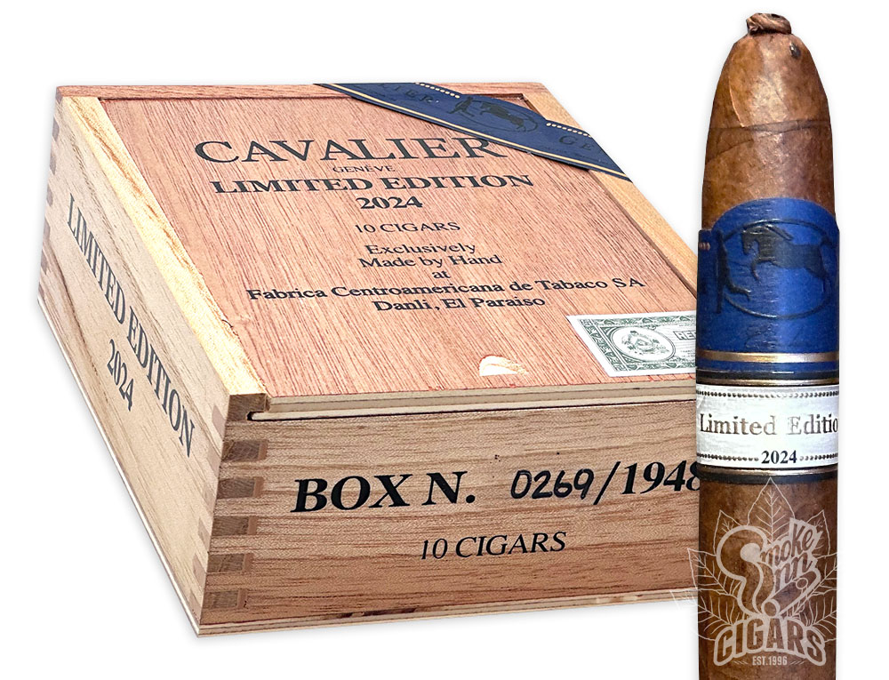 The Cavalier Genève Limited Edition 2024 is the seventh release in the brand’s acclaimed Limited Series, celebrated for its unique, one-of-a-kind cigars. This year’s edition debuts the first non-parejo size in the series, a 5½" x 58 double figurado complete with a pigtail cap, featuring an undisclosed blend to enhance the line’s exclusive allure.
