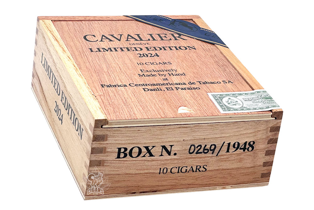 While the cigar arrives without the brand’s signature edible gold foil on the wrapper, the Limited Edition 2024 still tips the cap to Cavalier's gold signature, limiting the project to 1,948 boxes of 10 cigars (a number symbolizing the melting point of gold). The Cavalier Genève Limited Edition 2024 cigar offers a distinctive smoking experience, being rolled out of the company's craft-focused factory in Honduras.