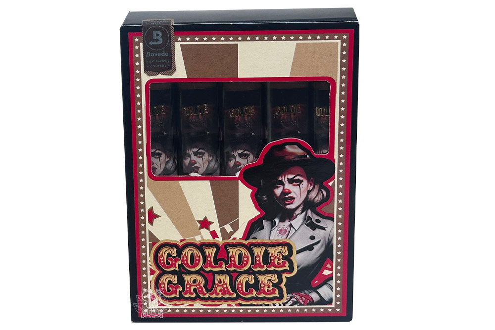 Goldie Grace delivers a medium-bodied profile, rich in flavor and complexity. Cigar enthusiasts can expect notes of light cabinet spices, transitioning into flavors reminiscent of chewy cinnamon-sugar alongside toasted cashews, leather, and clean cedar. The cigar offers a balanced draw with generous smoke output, making it appealing to both fans of Cigar Clowns and Chaffiot Collection and those discovering their products for the first time.