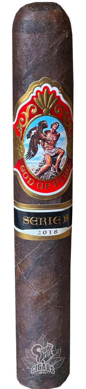 Masterfully blended by Carlito Fuente, God of Fire is one of the finest super-premium and most sought after cigars on the market. The God of Fire Serie B is far from your every day God of Fire cigar.The Serie B has been masterfully blended to be the boldest and richest God of Fire yet. At the core you will encounter a blend of aged Dominican long-fillers radiating with flavor, then exquisitely gift wrapped with a flawless Connecticut Broadleaf maduro wrapper. Released in small quantities annually, this medium to full bodied cigar exudes rich smooth notes of spice, cocoa, and espresso.