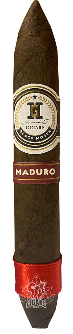 The Howard G Black Moses Maduro cigar is rolled in a box-pressed 6⅛" x 58 perfecto size, using a Habano maduro wrapper, a Habano binder, and all-Nicaraguan fillers from the Estelí and Jalapa regions. While similar to its Natural sibling, the Maduro is darker in profile, hitting notes of earth, french-pressed coffee, and mocha.