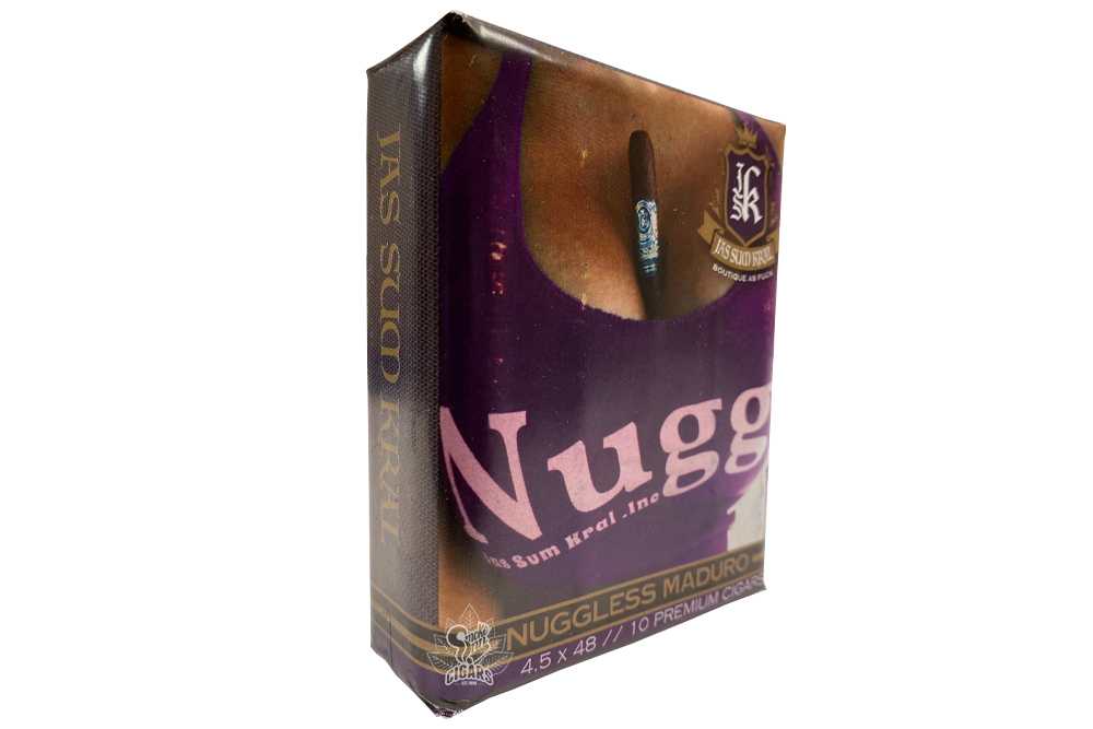 In 2019, Riste Ristevski of Jas Sum Kral set the industry ablaze with his release of JSK Nuggs, the first premium, handmade cigar infused with CBD oil. It was released in two blends: JSK Nuggs Habano and the higher-CBD-content JSK Nuggs Maduro. In 2021, the company decided to release a CBD-free version of those same blends, cleverly dubbed Nuggless. All Nuggs were originally released in only one size, a 4½" x 48 small robusto and the Nuggless will only come in that original small robusto vitola.
