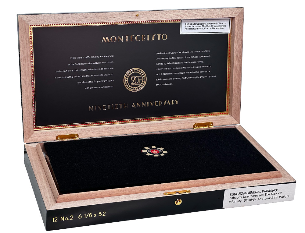 Expect a refined, medium-full-bodied profile that evolves from start to finish, including sweet cedar, roasted almond, dark cocoa, pepper, and mineral-rich earth, all carried by a smooth, structured balance from start to finish. Presented in luxury-class boxes, the Montecristo 90th Anniversary is both a celebration of history and a nod to Montecristo’s enduring place in the modern humidor.