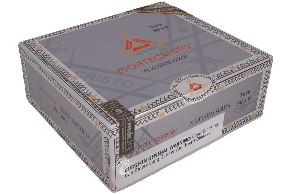 The "goldish" hue of the Montecristo Classic line has gone Platinum! Launched in 2002 to cater to aficionado's growing demand for fuller flavor and bodied cigars, the Montecristo Platinum delivers. Made with select Mexican Cubano wrapper grown in the legendary San Andres Valley along with a robust Dominican binder and a balanced blend of Dominican, Nicaraguan and Peruvian long filler tobaccos, the Platinum delivers notes of dried fruit, earth and hickory that will give you that robust full flavor beyond that of the traditional line.