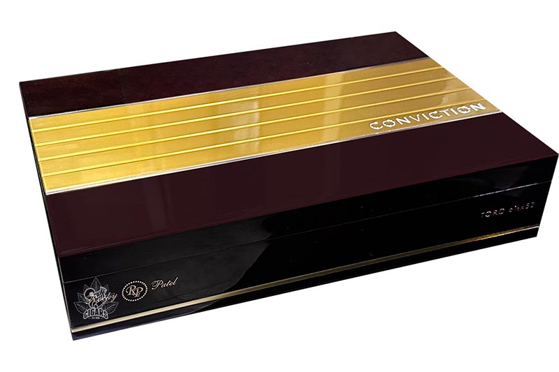 Only two pairs of rollers were tasked with handling the entire production of 50,000 cigars, ensuring the highest degree of consistency. Not surprisingly, Rocky shows off the bells and whistles throughout the packaging and presentation, with each cigar being encased in metallic tubos that resemble gold bars. Each box doubles as a functioning humidor, featuring precision hinges and solid wood. From the farm to the tobacco processing/aging to the meticulous construction of each cigar, the Rocky Patel Conviction is crafted to offer one of the finest smoking experiences available for the aficionado.