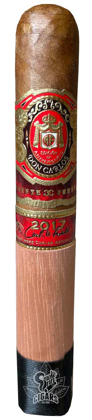 In 2006, 30 years after Carlos Fuente, Sr. introduced the famed Arturo Fuente Don Carlos cigar, Carlos "Carlito" Fuente, Jr. set out to honor his father with a new twist on the iconic cigar. The project was dubbed Don Carlos Edición de Aniversario, offering a new take on the venerable blend by swapping the cigar's African Cameroon wrapper for the Dominican shade-grown leaf used on Carlito's own Fuente Fuente OpusX cigar.