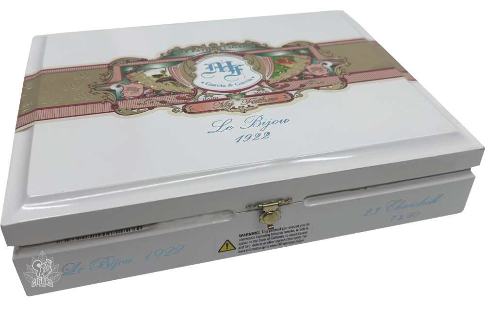 The My Father line now has many spinoffs fitting of a wide range of profiles, but the first addition came a year after the original My Father cigar. Dubbed My Father Le Bijou 1922, this cigar was blended by Don Pepín himself, continuing the theme of "father appreciation" by commemorating Pepín's father, who was born in 1922. As for Le Bijou, it is French for The Jewel, alluding to the cigar's luxurious smoking experience. This is a darker, stronger blend when compared to the original My Father cigar. It boasts a Nicaraguan puro recipe, using a Cuban-seed oscuro wrapper over a hearty selection of all-Nicaraguan binder/fillers.